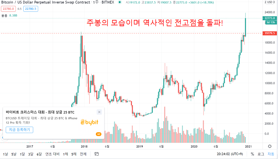 금일 비트코인이 역사적인 전고점을 돌파 했습니다.
